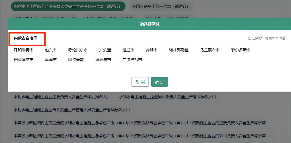 2.区域选择“内蒙古自治区”。(如图2-2)