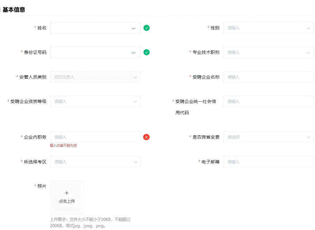 6.填写基本信息,一定要注意核查!将根据自己填报的信息安排考试及证书发放!本次考试可选择呼和浩特、赤峰市、鄂尔多斯市三个考场。(如图2-6)