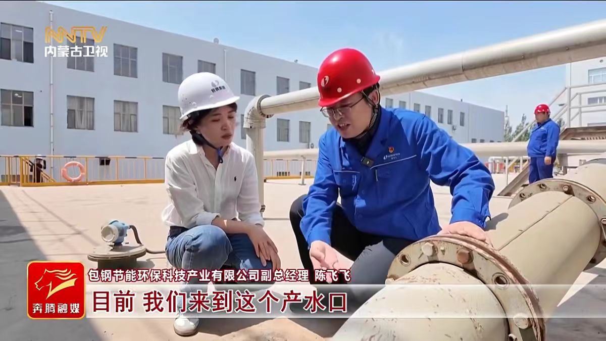 包钢节能环保科技产业有限公司副总经理 陈飞飞 目前,我们来到这个产水口,就是我们经过多级反渗透膜,超浓缩处理以后的一个优质回用水。在这里优质回用水的含盐量,它已经降到了200到300(毫克每升),比我们黄河水的水质还要好。
