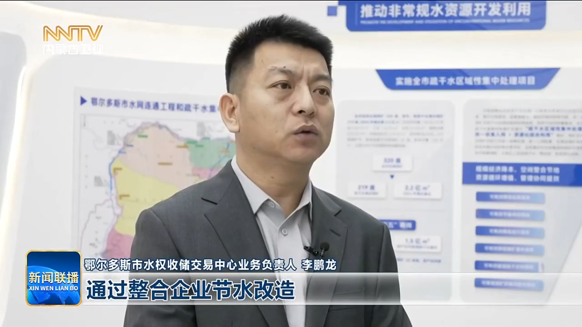 鄂尔多斯市水权收储交易中心业务负责人 李鹏龙 通过整合企业节水改造产生的余量水权与闲置指标,将分散的水资源集中收储,并依托公开透明的交易平台精准匹配需求,显著提高了利用效率。