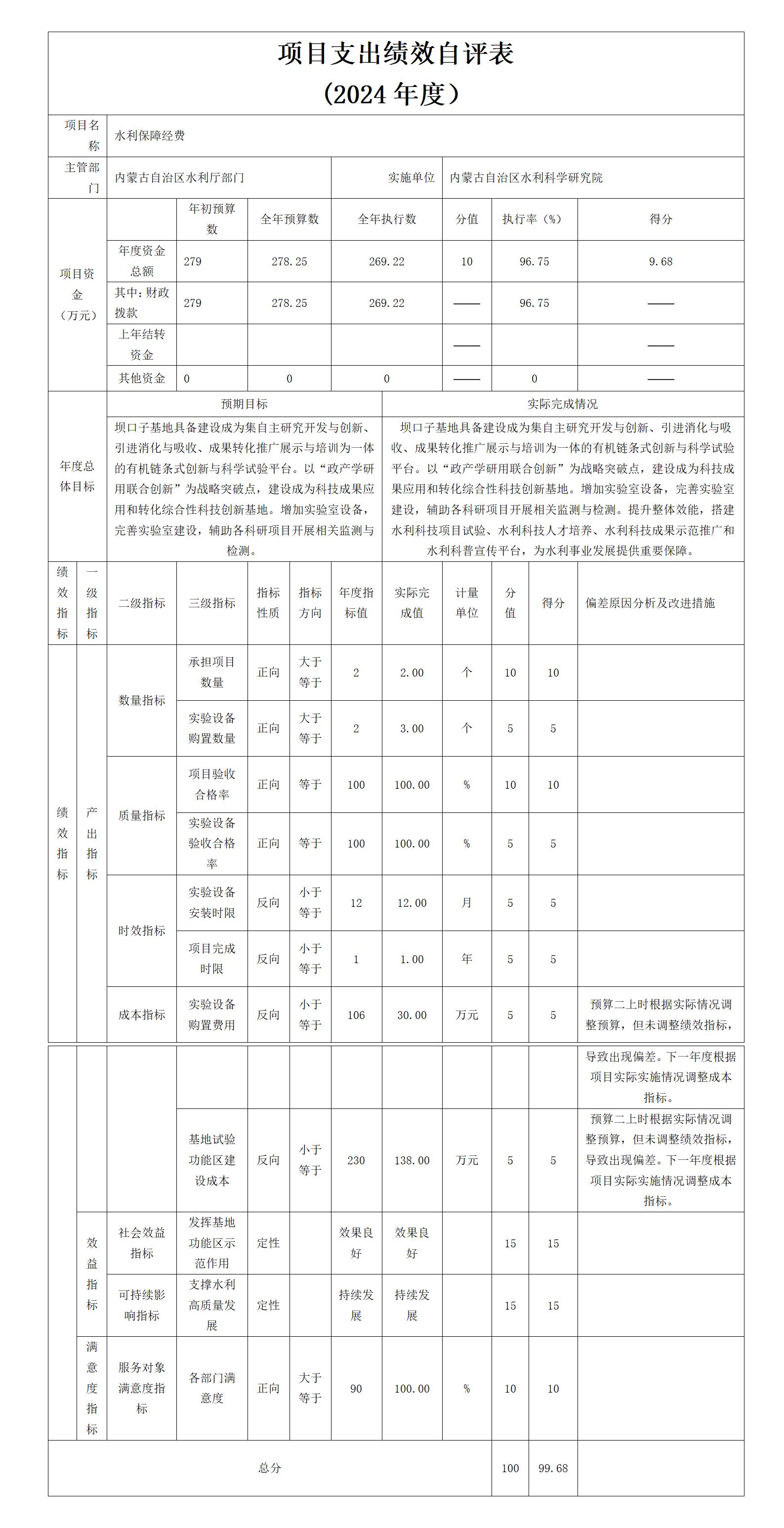 以水利保障经费项目为例,该项目绩效评价综合得分为99.68分,绩效评价结果为“优”。